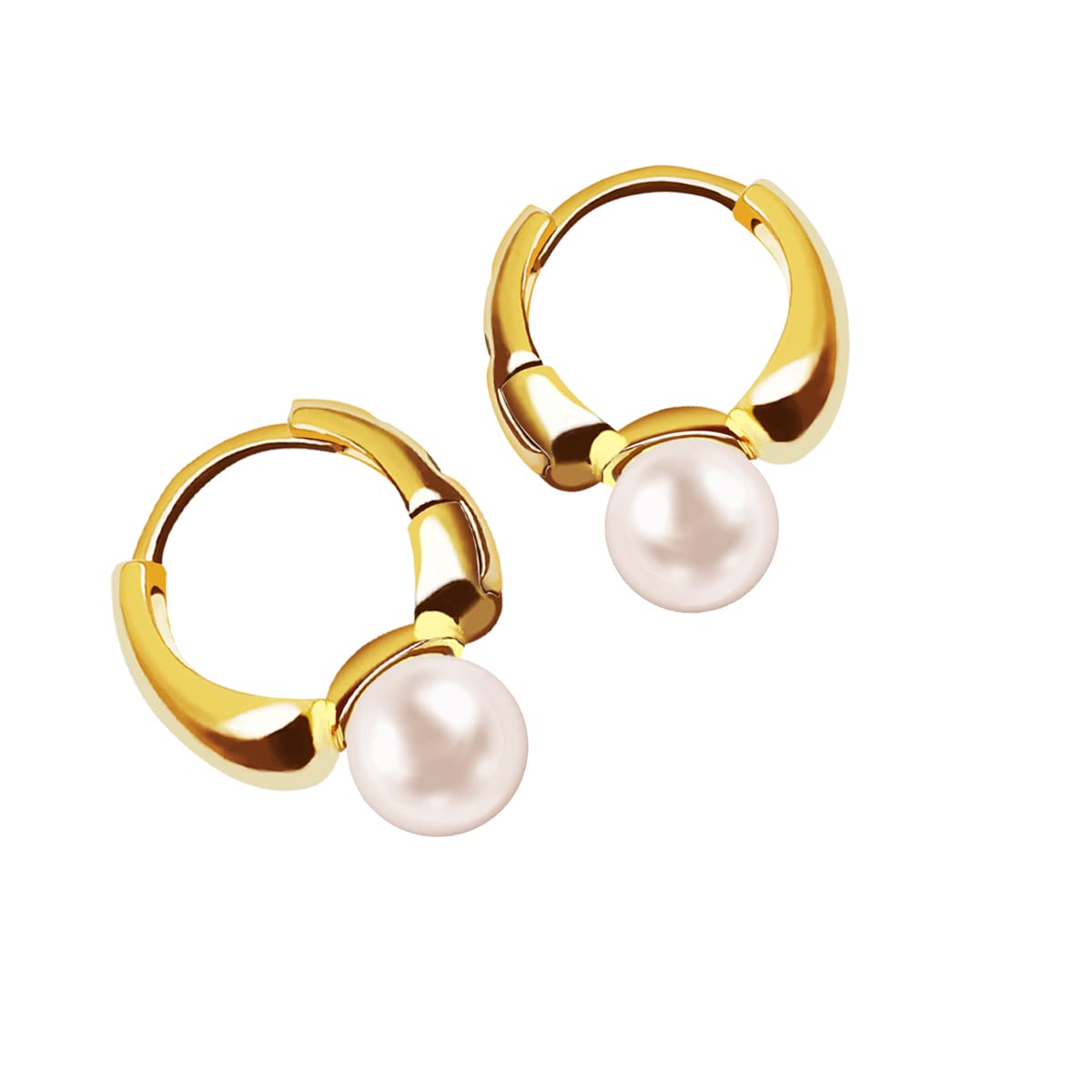 White Pearl Drop Earrings for Women Sterling Silver Small Hoop Earrings with Pearl Huggie Hoops Earrings Studs 18K Gold Plated/White Gold Plated Dainty Pearl Jewelry Gift Hypoallergenic