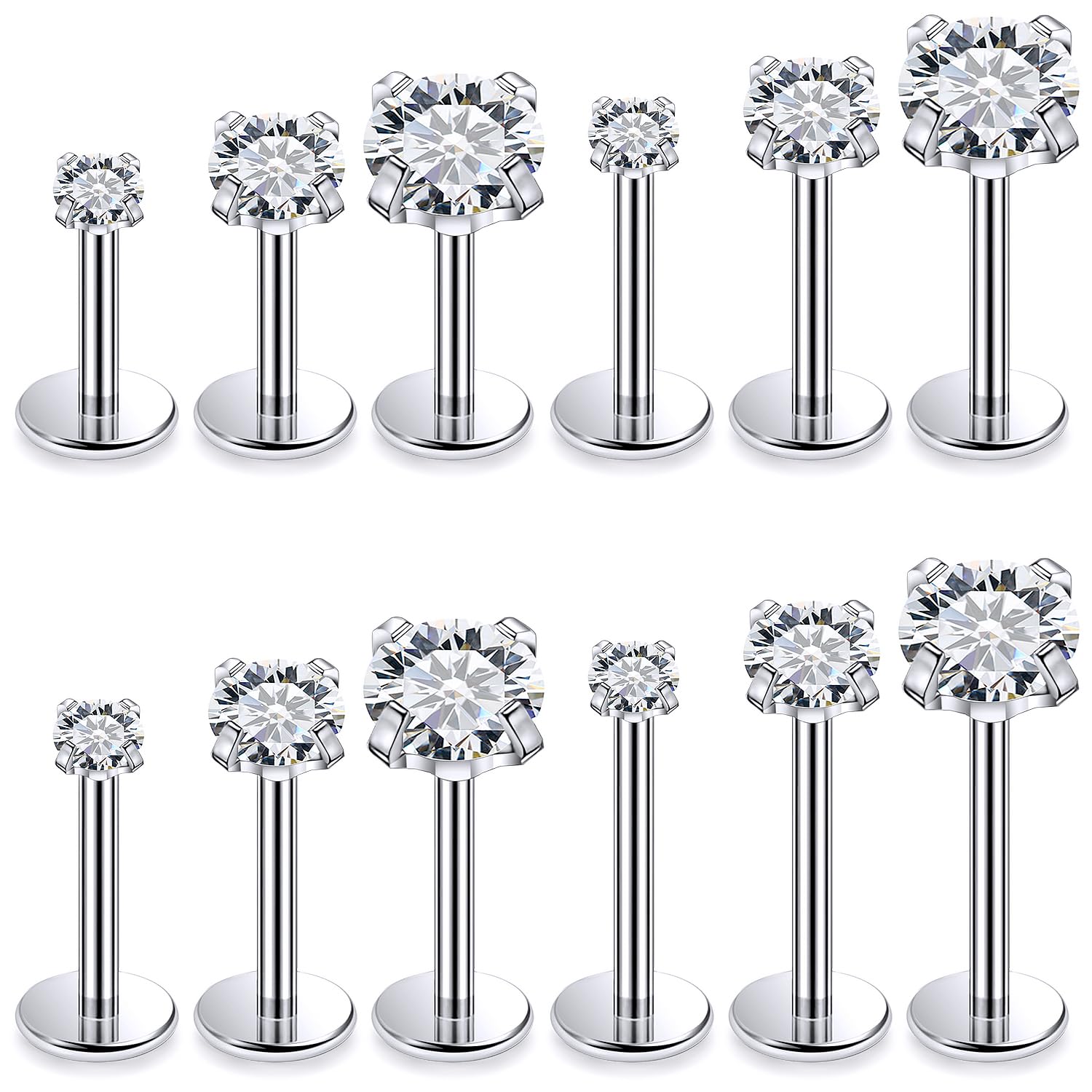 Xnsjeyy 14G 16G Flat Back Tragus Earrings Labret Medusa Piercing Jewelry Surgical Steel Monroe Lip Rings Snake Bite Forward Helix Conch Cartilage Earrings Piercing Jewelry for Women Men Silver Gold